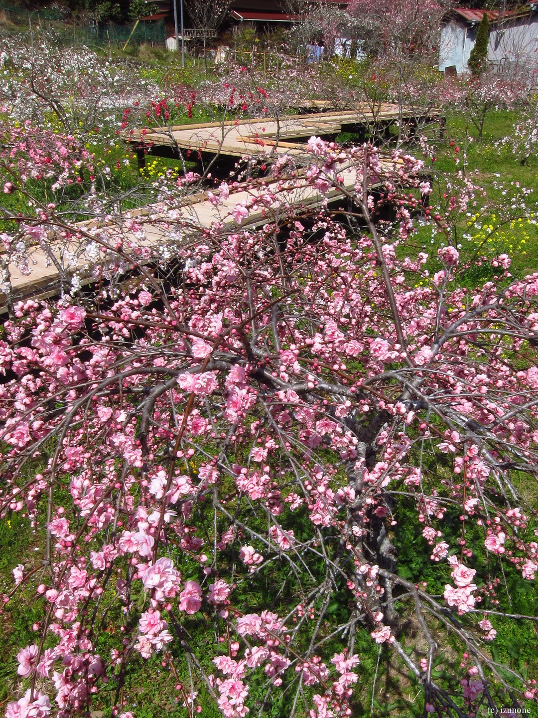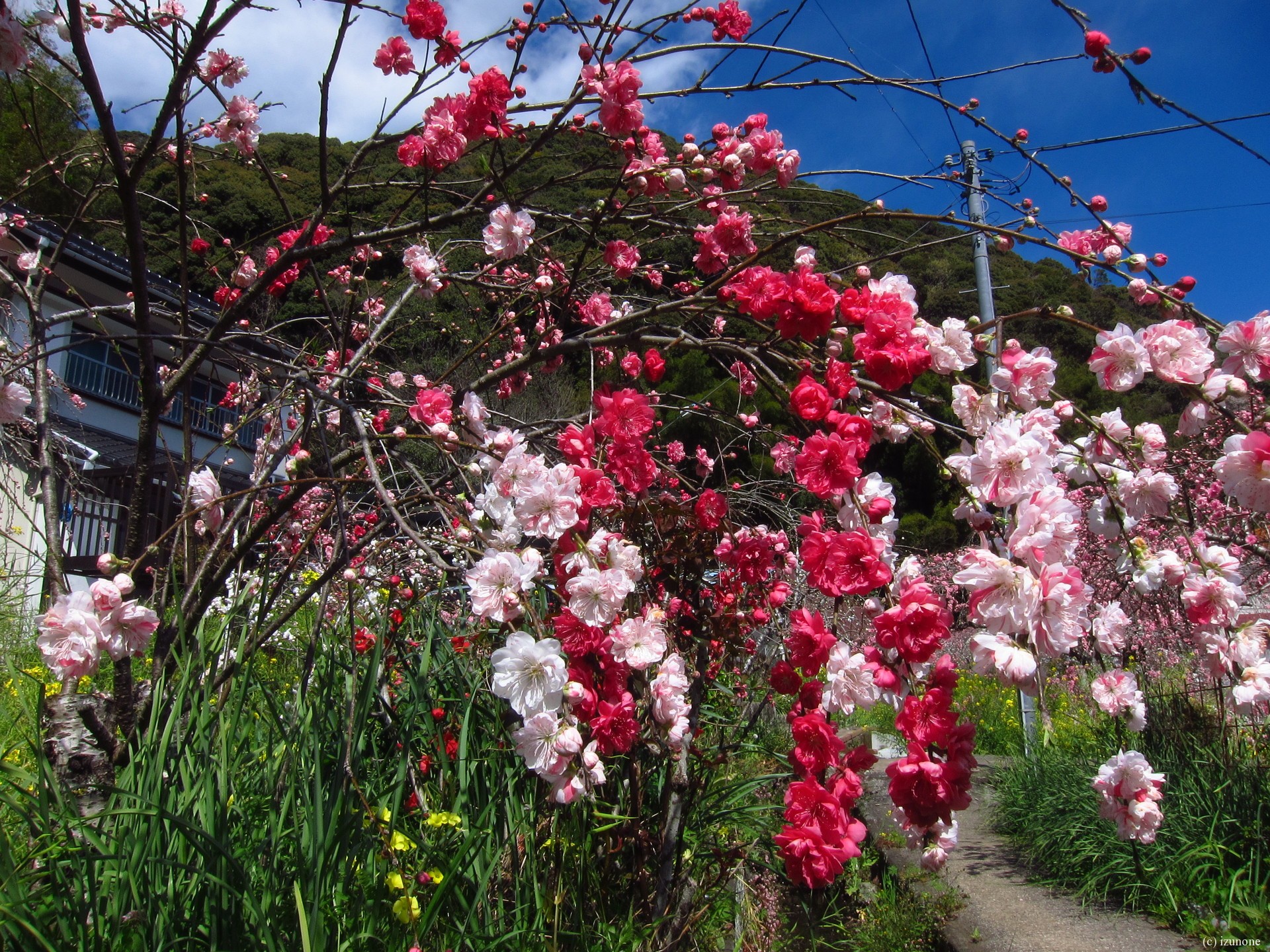 下田市蓮台寺のしだれ花桃を見てきました。 青空に花桃が映えていました。